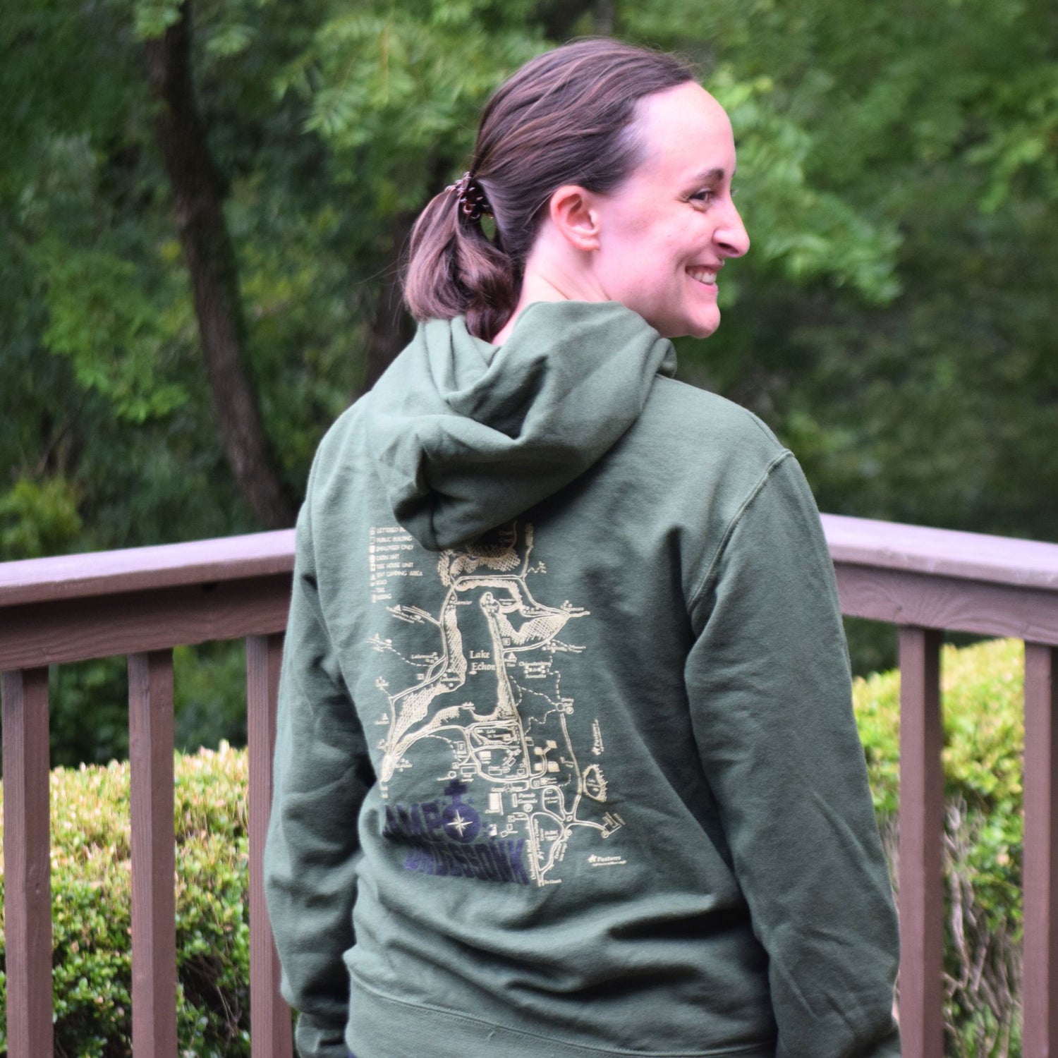 Forest Green Hoodie featuring Camp Map on back is the perfect item for staying cozy and comfortable year round. Get yours today!