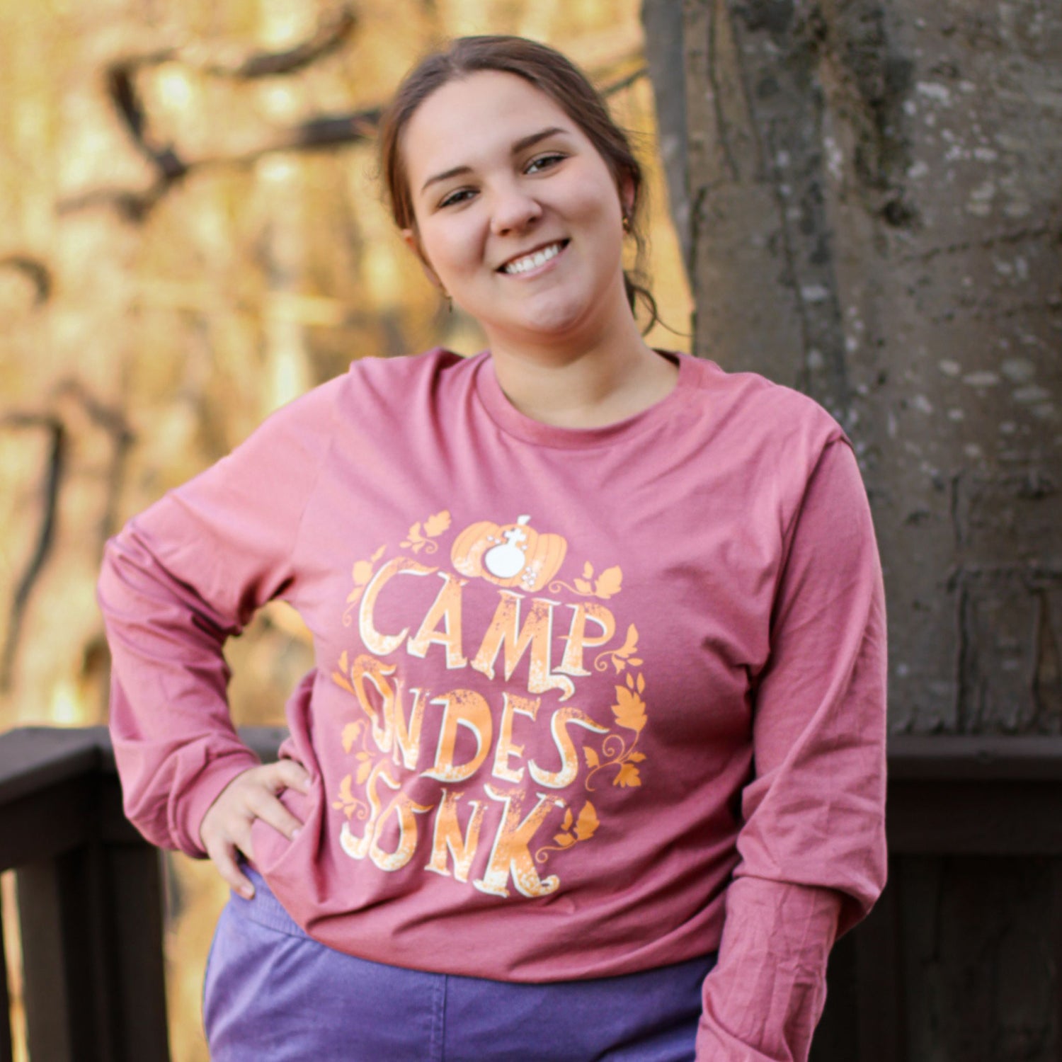 Camp Ondessonk Pumpkin Longsleeve Shirt. Look stylish while showing off your camp spirit!