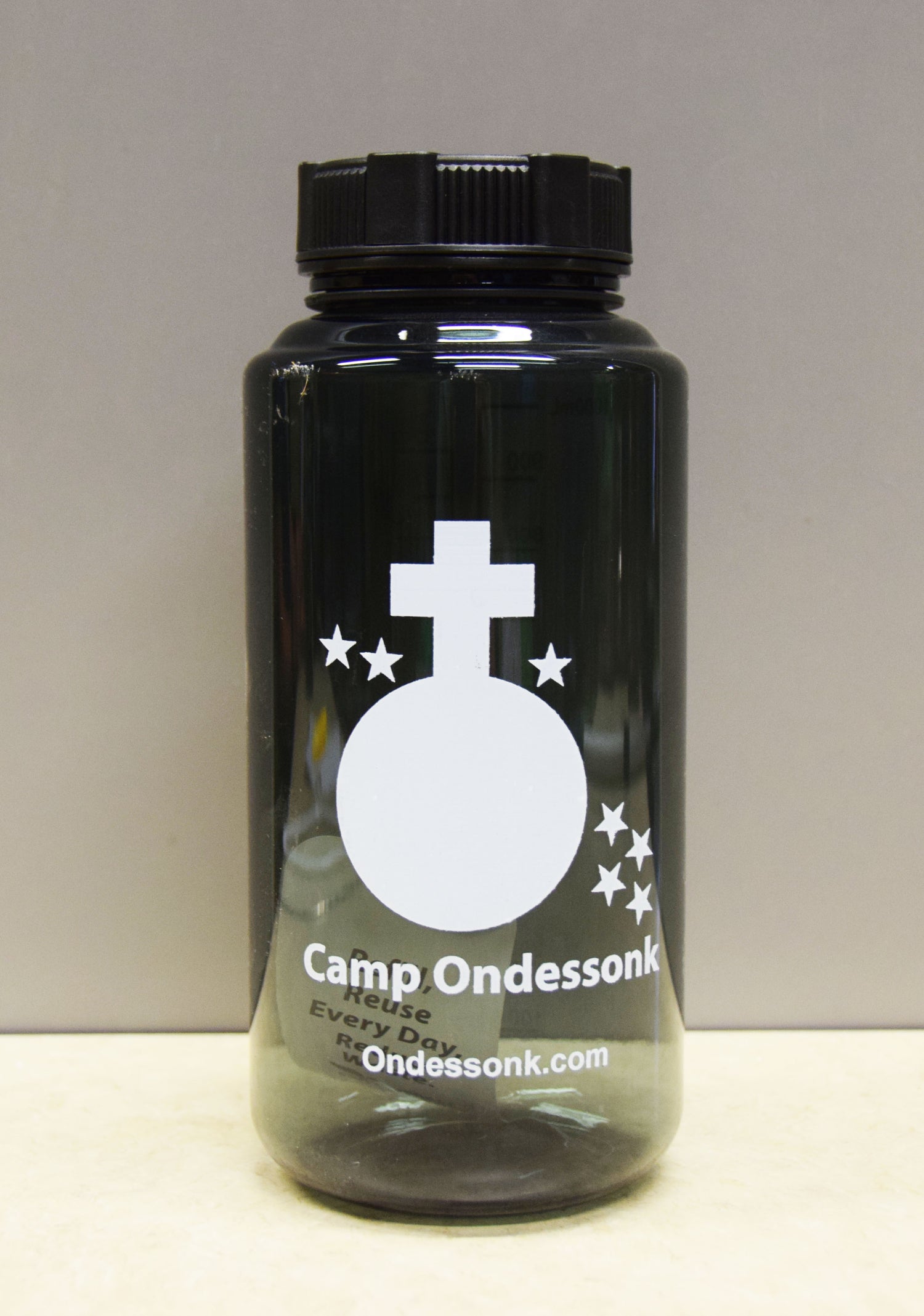 BPA Free, reusable Camp Ondessonk water bottles. Great to keep you hydrated on the trails.